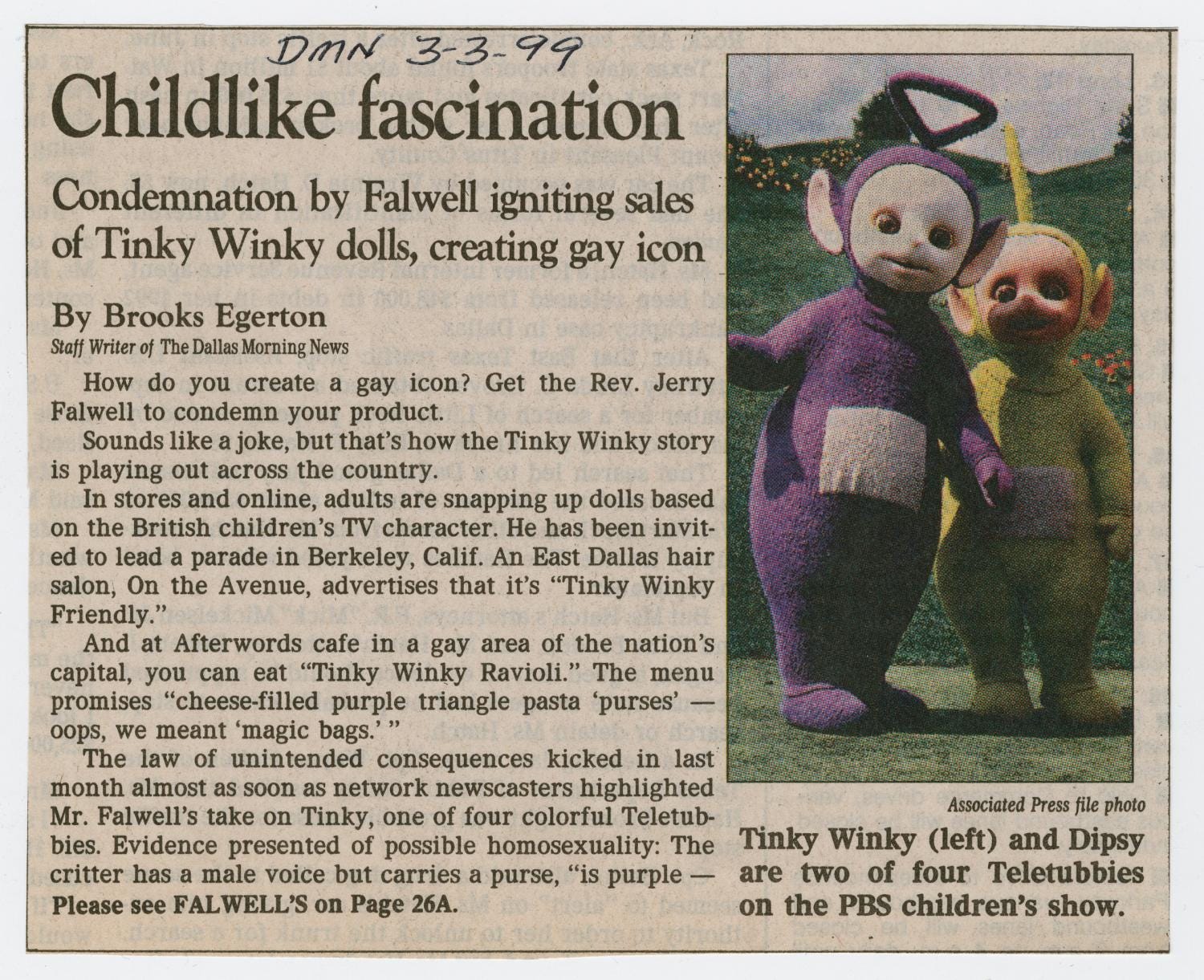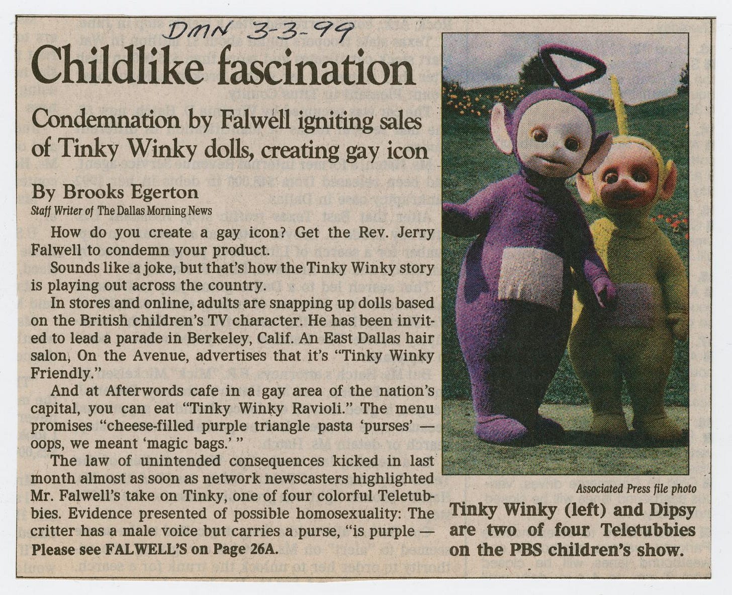 I remember the, uh, actor, being interviewed on one of those British TV late shows, where he tearfully insisted that he was "the real Tinky Winky!"