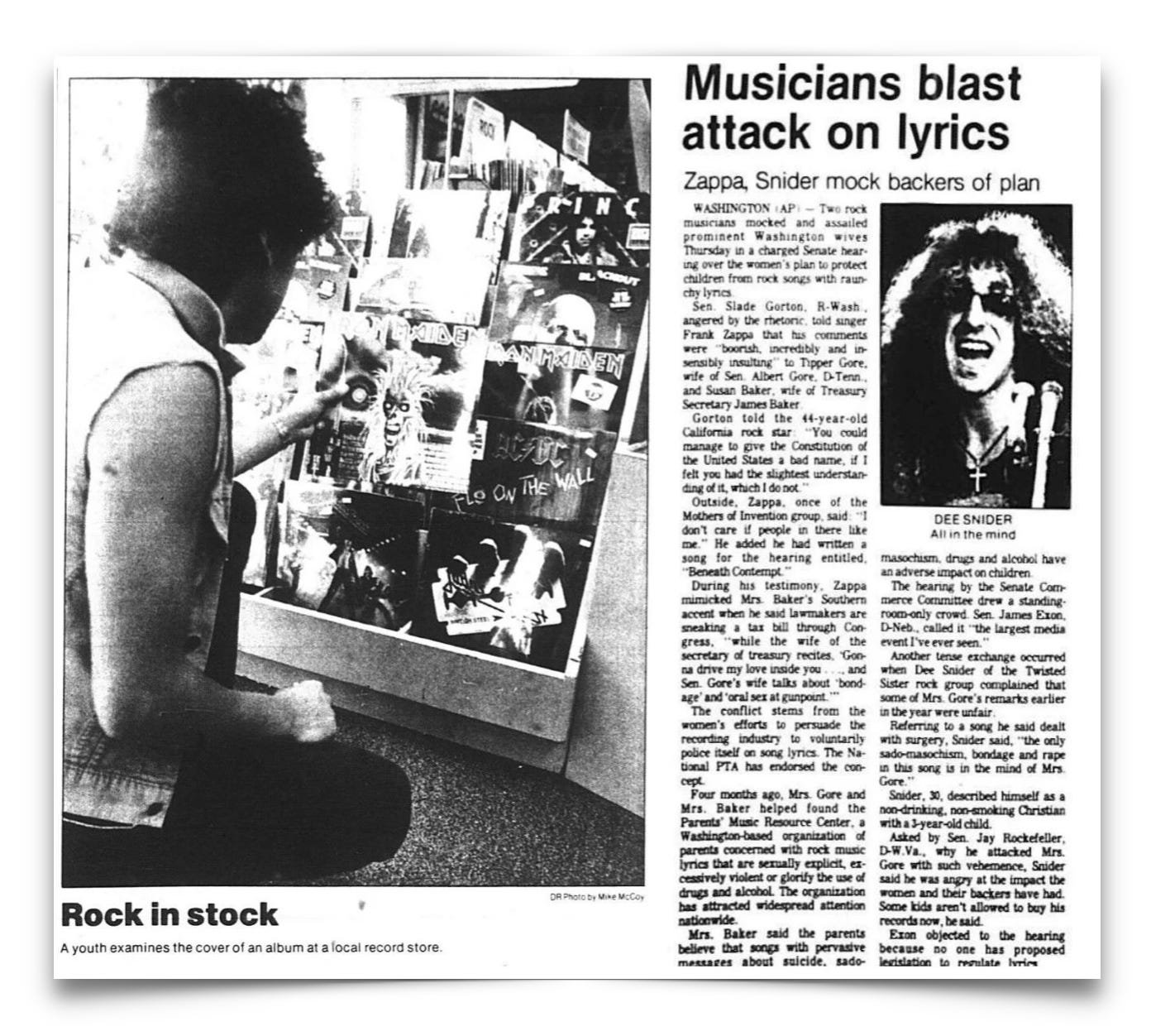 That same year Tipper Gore would form the ‘Parent’s Music Resource Centre’ after buying Purple Rain for her daughter, she was appalled by the lyrics. In a rare bipartisan moment, she and other D.C. wives formed the Parent’s Music Resource Center. Ozzy’s Black Sabbath song ‘Trashed’ would be listed in the ‘filthy fifteen’ - a list of the most offensive unregulated songs. The effort combined concerns about occult influence, with more general moral concerns that appealed to secular parts of society.