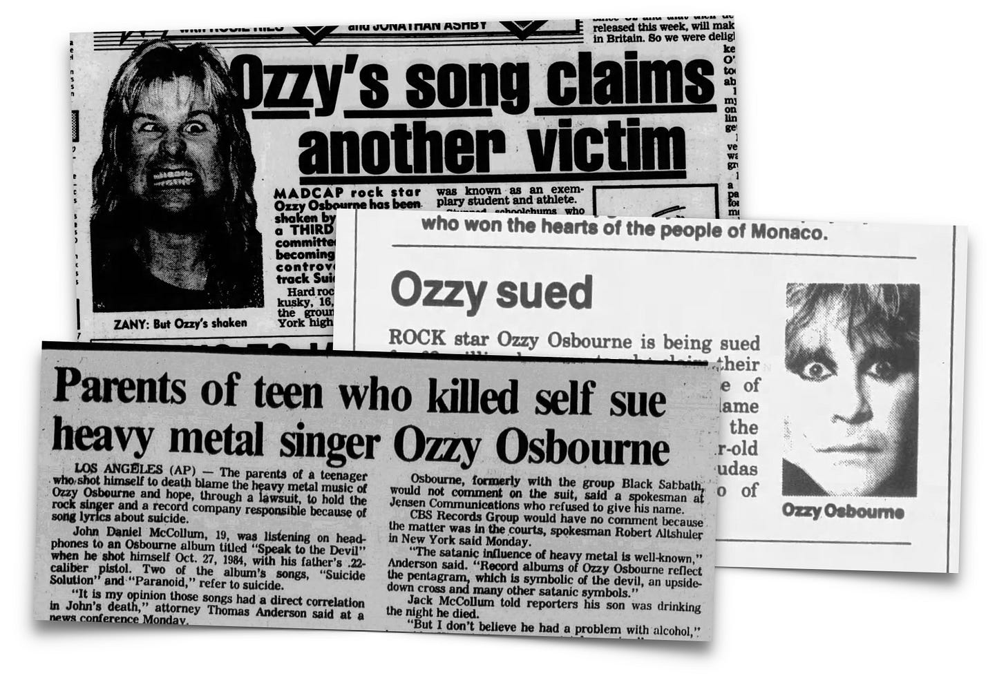 In 1985 Ozzy’s song ‘Suicide Solution’ would be blamed for a youth suicide in a lawsuit - even though the lyrics were actually about alcoholism that killed a fellow musician (it would eventually be dismissed on free speech grounds.) Another British heavy metal band - Judas Priest - would also end up in court, with accusations of subliminal messages encouraging suicide.