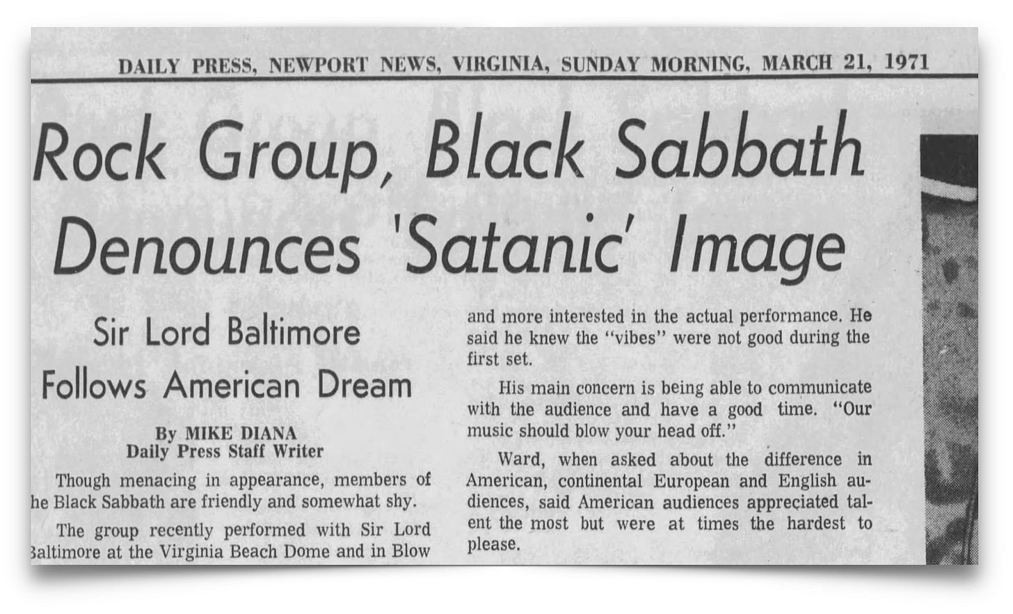 The following year Ozzy - right on cue - would turn up on US shores. In 1970 ‘Black Sabbath’ performed in the US for the first time - their ominous name, dark lyrics, and theatrical use of occult imagery would make his association with Satanism and the occult, all but inevitable.