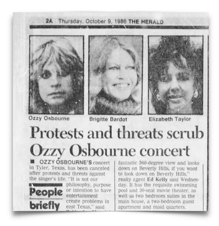 In 1986 Ozzy would cancel a concert in Texas after protests and death threats: